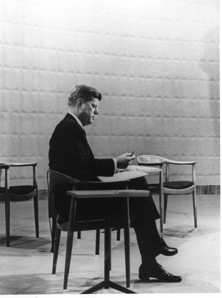 Выставка также иллюстрирует, как процесс демократизации во многих западных странах привел к созданию конструкций и сидений, отражающих такие ценности, как гибкость, прозрачность и равные права. Например, во время легендарной телевизионной дискуссии между Джоном Ф. Кеннеди и Ричардом Никсоном в 1960 году кандидаты сидели на стуле Ханса Дж. Вегнера «JH501» (1949/50), деревянной модели, современный дизайн которой представлял собой идеалы более скромного, массового политического стиля. Голландский дизайнер Хелла Йонгериус приняла это понятие на шаг дальше с ее «East River Chair»(2013/14), задуманный для штаб-квартиры ООН в Нью-Йорке. Его красочная обивочная ткань, нижняя часть спинки и встроенные подлокотники передают ощущение открытости и множественности. Задние ножки оснащены колесами, как бы говоря: изменение важнее, чем придерживаться традиционных ценностей. Кресло Jongerius привлекло внимание, когда его использовали Ангела Меркель, Кристин Лагард и Иванка Трамп во время группового обсуждения на саммите Women20 в Берлине.