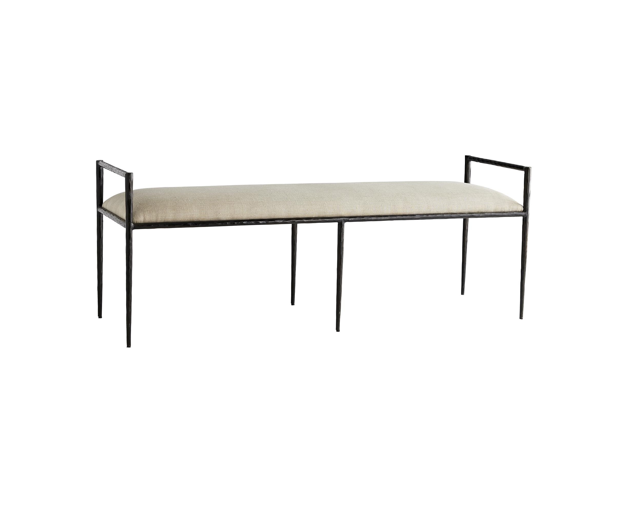 Barbana Bench поднимает планку для стильных вариантов сидения. Изысканная оправа идеально уравновешена, сидит на тонких, как у насекомых, ножках. Корпус из натурального железа был выкован вручную, создавая мягкие отпечатки вдоль остроугольной рамы. Узкое сиденье покрыто натуральным текстилем.