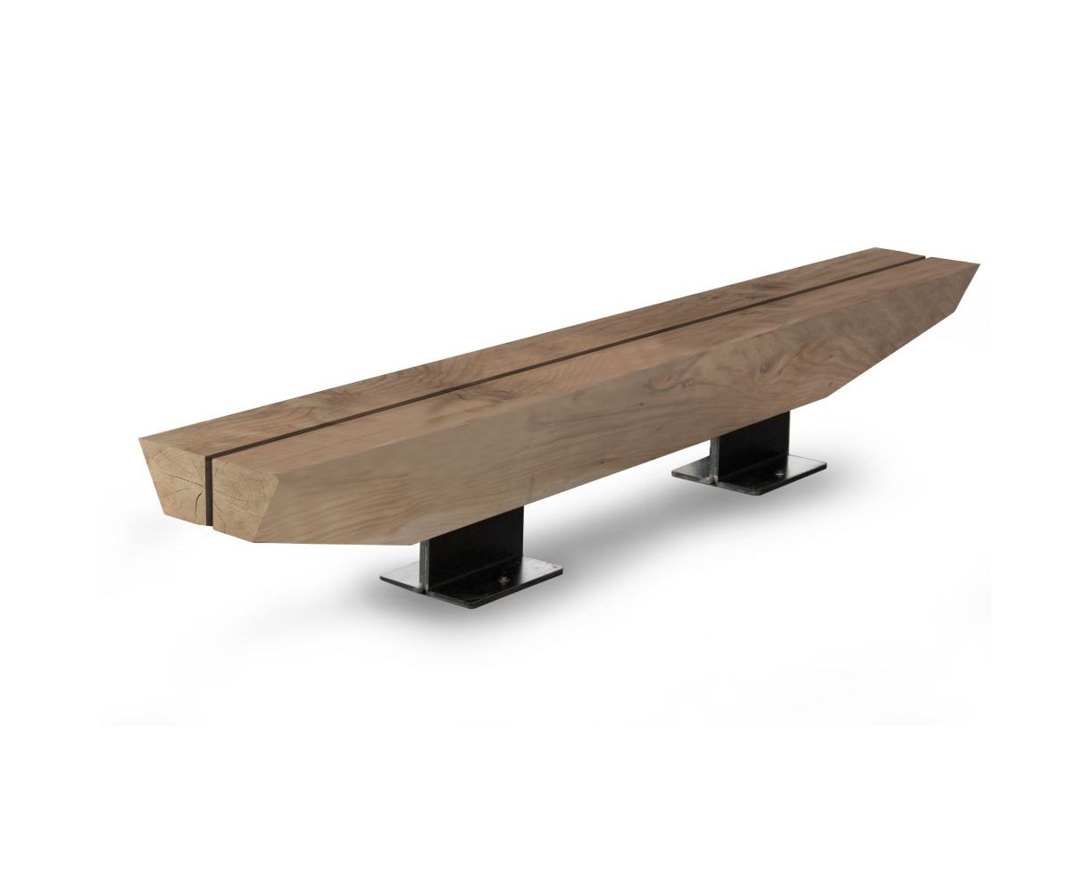 Скамья сделана из единого блока ароматного кедра. Две секции ствола разделены центральным зазором и собраны с использованием железных элементов, которые функционируют в качестве основы. Изделия изготовлены из полностью натурального дерева ручной обработки без добавления какой-либо обработки. Любые движения, трещины и изменения внешнего вида древесины являются неотъемлемыми характеристиками этих элементов и являются результатом естественного заселения и разнообразных условий окружающей среды древесины.
