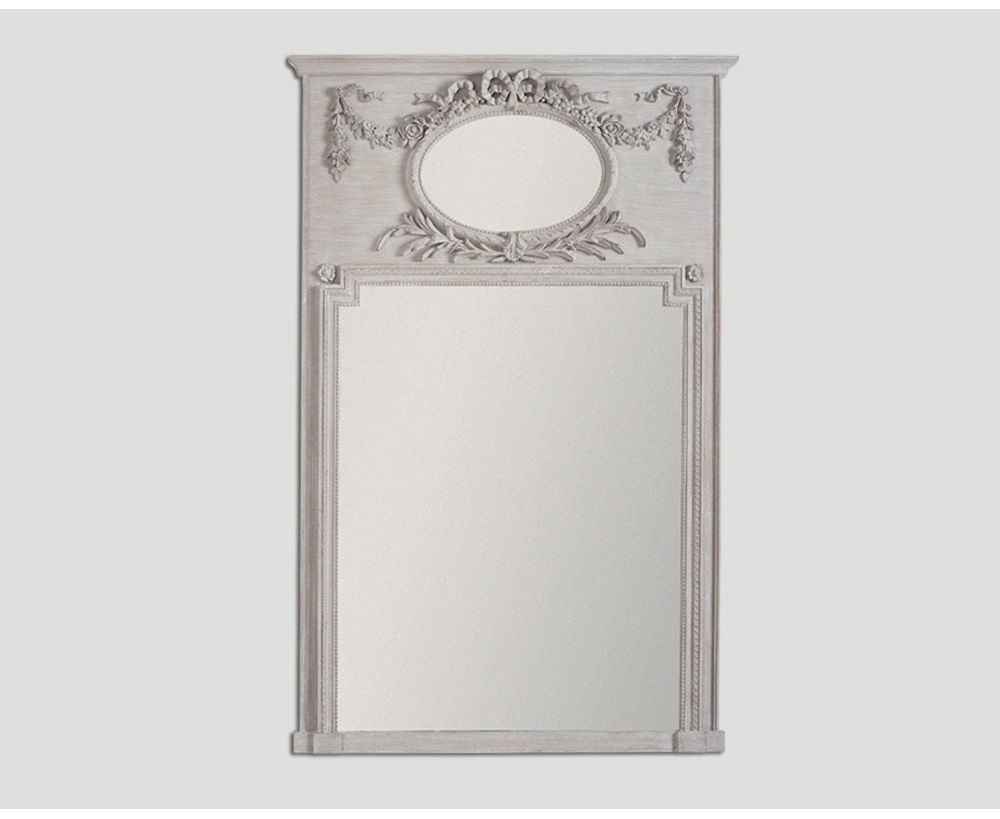 Specchio rettangolare intagliato, finitura laccato Grigio decapato