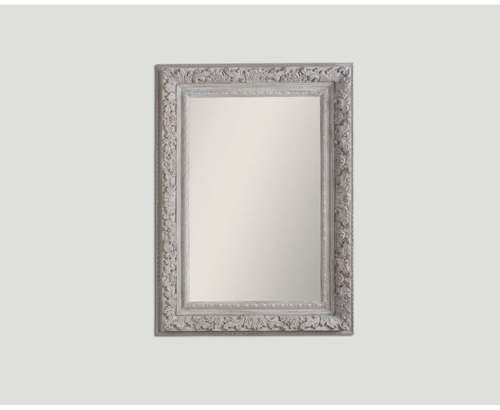 Specchio rettangolare intagliato, finitura laccato Grigio decapato