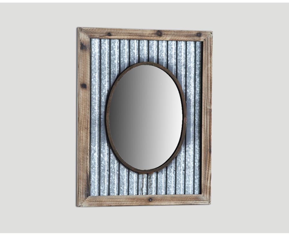 Specchio rettangolare in legno, finitura naturale con pannello in zinco