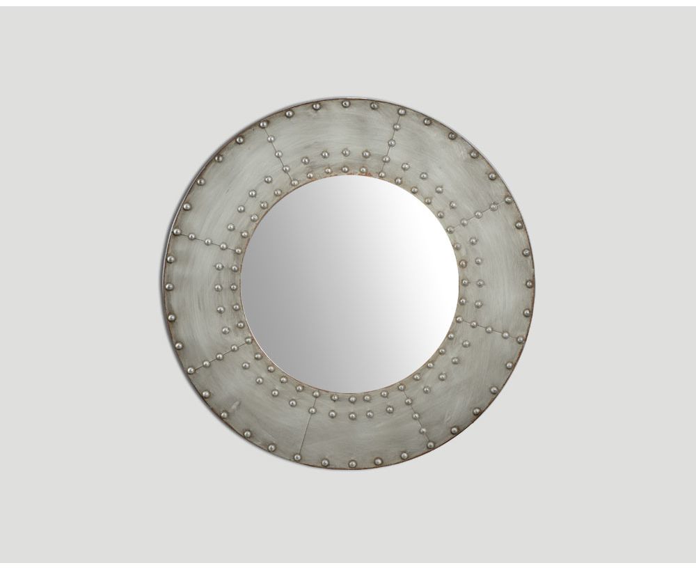 Specchio tondo in metallo borchiato, finitura Grigio decapato