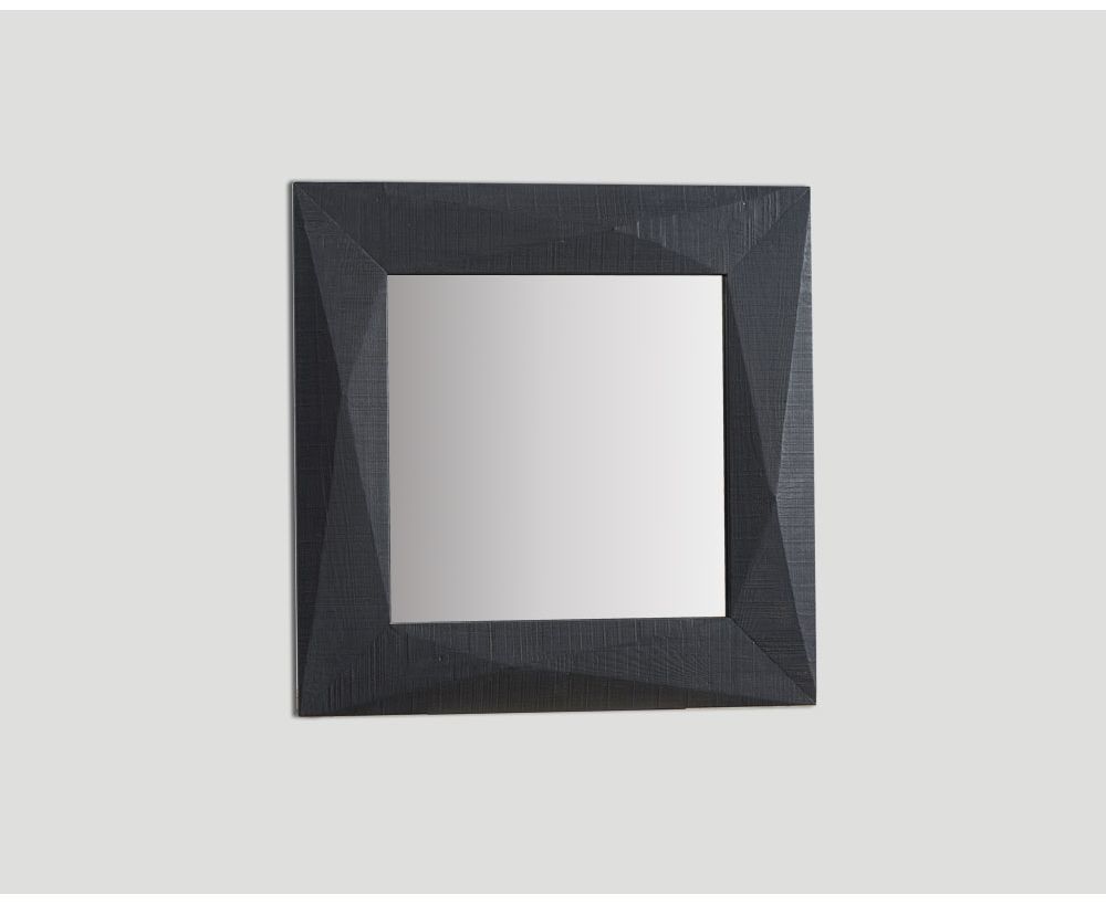 Specchio quadrato in legno vecchio riciclato, finitura laccata e cerata a pennello color Lavagna