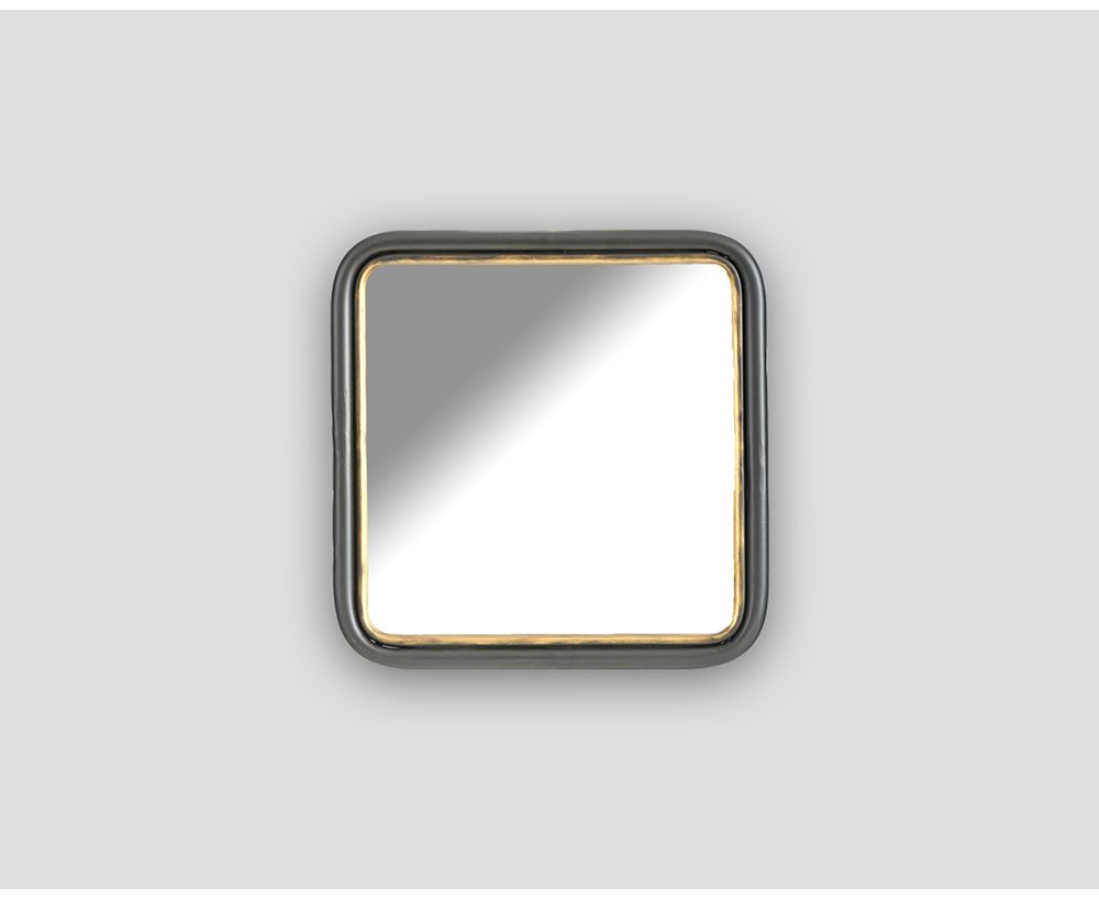 Specchio quadrato struttura in metallo finitura ferro brunito, con inserto color ottone.