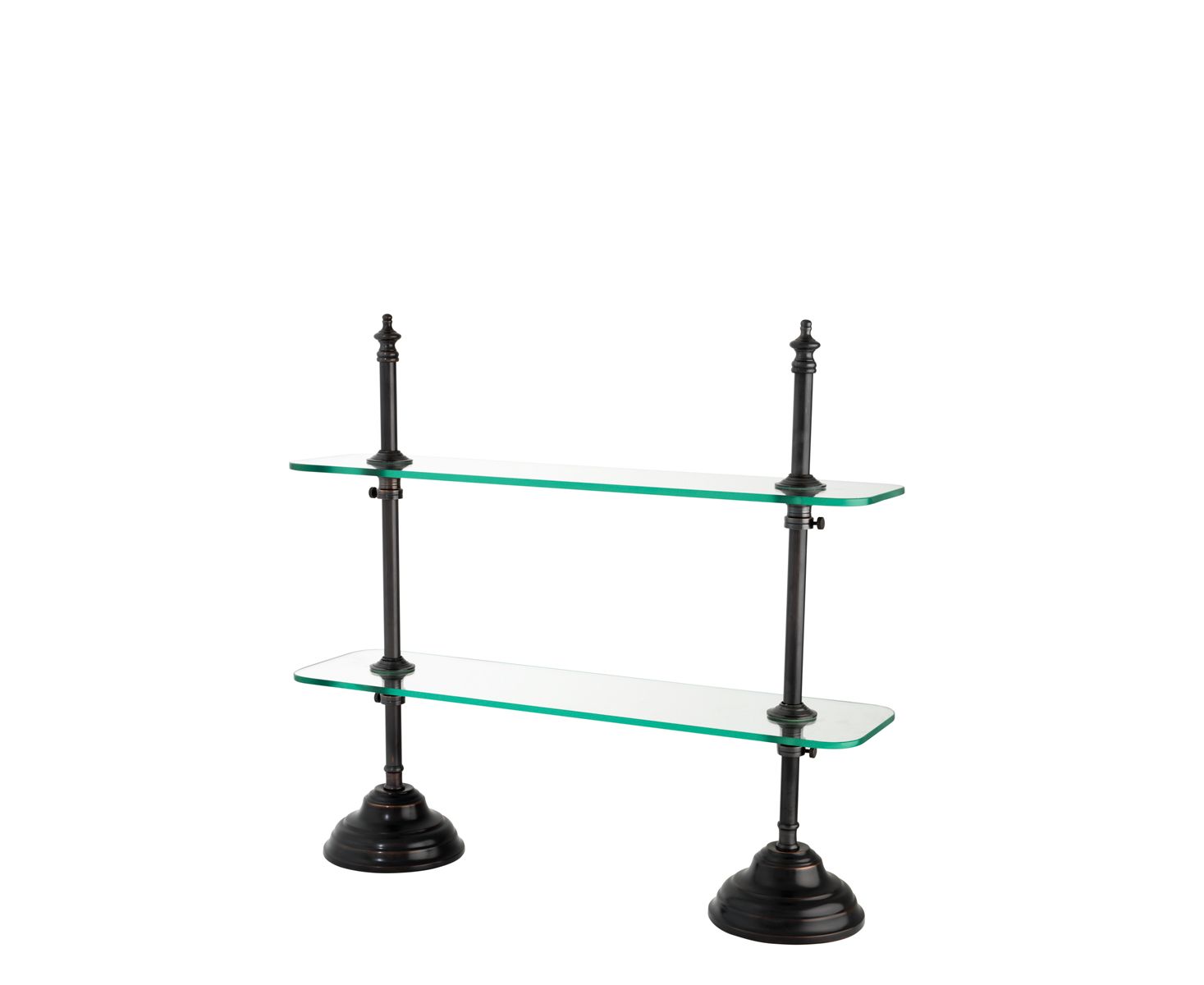 Вместительный и простой мини-стеллаж для книг или небольших предметов декора подойдет для гостиных в современном стиле. Две стеклянных полки.