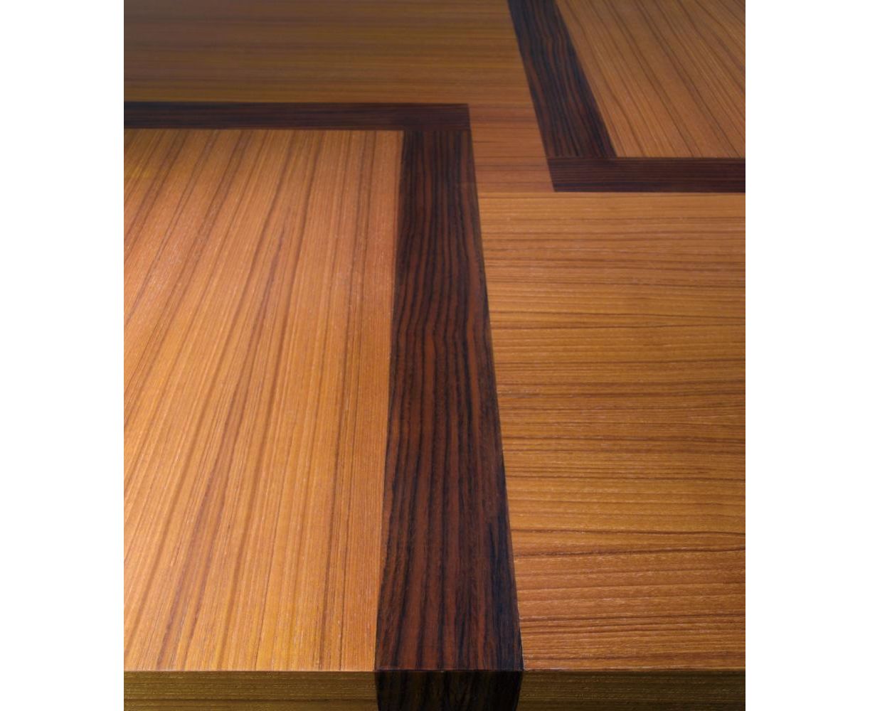 BD 07 – это стол с основанием из дерева и столешницей с инкрустацией деревом по дереву. Этот стол может быть изготовлен в нестандартных размерах и доступен с отделкой из шпона всех пород дерева, представленных в каталоге, а также в вариантах квадратной, прямоугольной и круглой формы. Предлагаемое сочетание двух различных пород дерева на выбор дает возможность предложить эксклюзивное изделие, выполняемое для удовлетворения требований клиентов с самыми утонченными идеями. Этот стол часто используется в качестве элегантного конференц-стола.