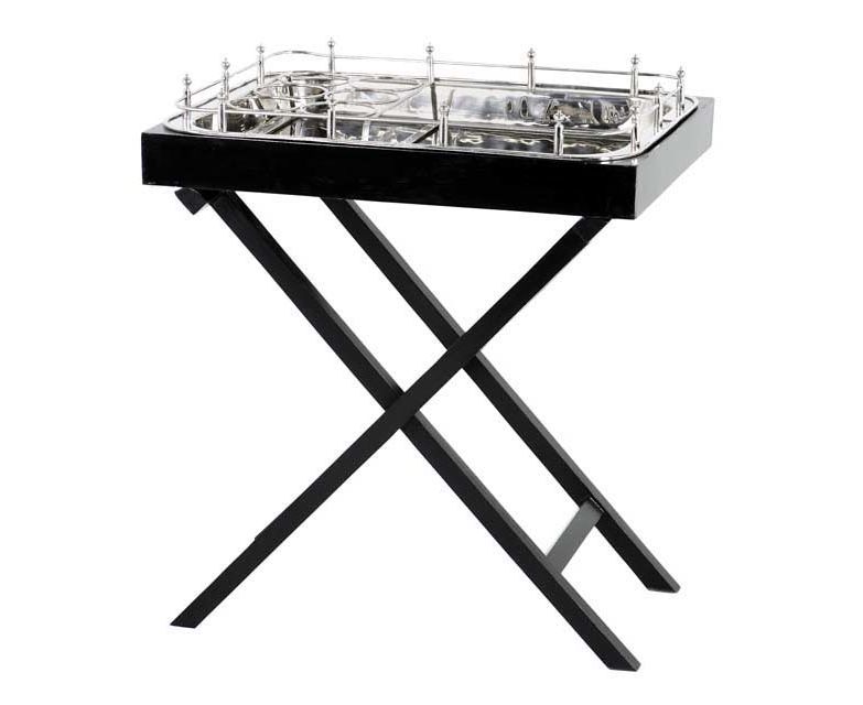 Столик с баром в современном стиле. модель выполнена из массива древесины с металлическими элементами. Ножки в форме буквы "Х". Прямоугольная столешница с углублением и дополнительными бортиками, чтобы ничего случайно не упало. Столик специально сделан для хранения бутылок и стаканов.