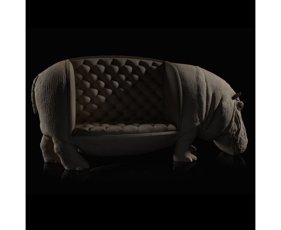 Гиппопотам - полуводное растительноядное млекопитающее, свойственное своему бочкообразному торсу, и одно из самых агрессивных и непредсказуемых существ в мире. Для этого дизайна, его огромный размер и объем были сохранены, избегая любых секций или перегородок вдоль его тела, чтобы выполнить целую часть в натуральную величину.