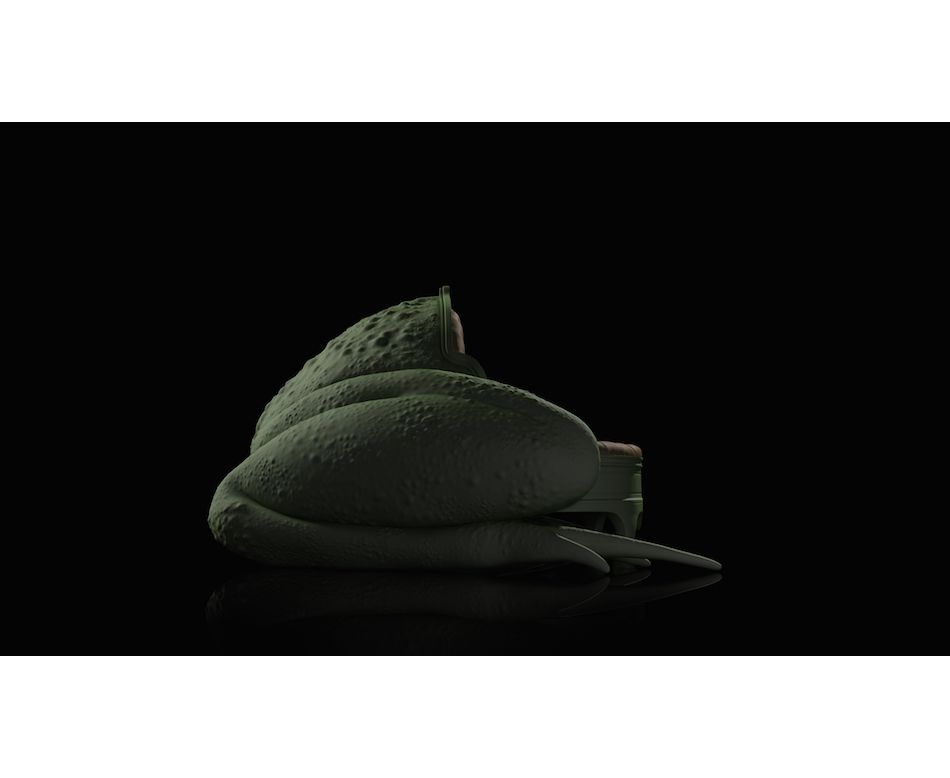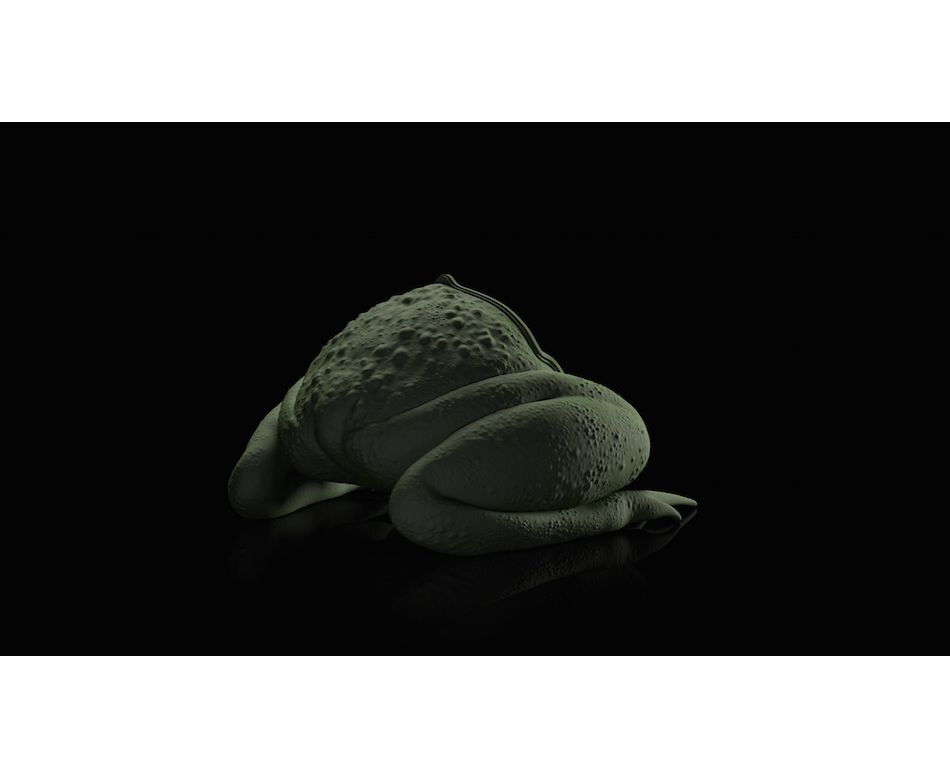 Дизайн стула жаба требует использования задней части животного. Быть безголовым представителем облегчило установление эмоциональной связи со зрителем. Для секции передних сидений Художник выбрал минималистический стиль барокко, где гладкие и простые поверхности предлагают сильный контраст с нерегулярными шишками на его жесткой коже.