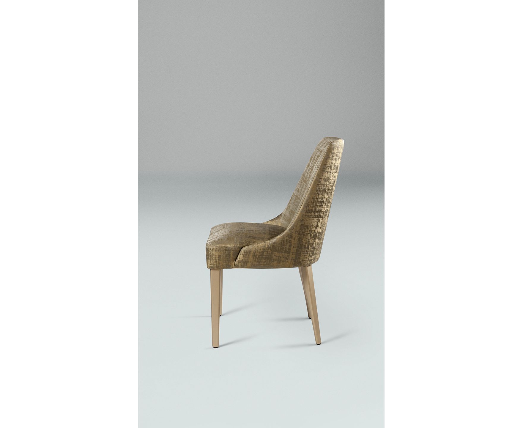 Мягкие плавные линии являются отличительными характеристиками этого сиденья, призванного привнести элегантность в обеденную зону, одновременно обеспечивая максимальный комфорт. Стул имеет структуру из бука, дополненную формованным полиуретаном со вставками из пенополиуретана разной плотности, покрытыми внутри 100% хлопокком и полиэстером. Обивку можно персонализировать, выбирая элегантную ткань, тонкую кожу или нубук; ножки из бука и окрашены в матовое золото. Несъемное покрытие.