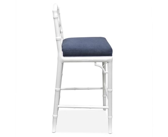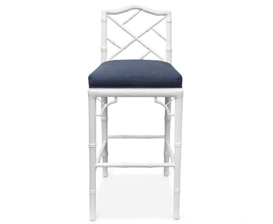 Барный стул Chippendale Counter Stool наполняет ваш дом фирменной маркой Palm Beach Luxe. Линии Chinoise в глянцевом белом лаке и плотная темно-синяя льняная обивка делают это идеальным дополнением для любого бара или высокого стола.