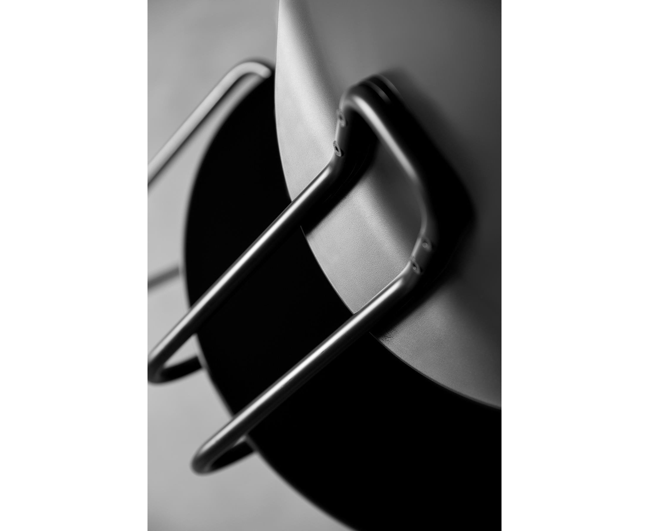 Многофункциональный складной стул с язычковым сиденьем, мягко изогнутой спинкой и стальной рамой.