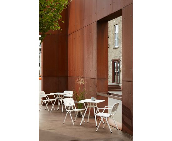 Коллекция RAY включает в себя 12 различных предметов уличной мебели. Объединены они своими графическими деталями и общими характеристиками. Современная и легкая серия уличной мебели разных цветов. Разработанный, чтобы быть оставленным снаружи с его матовой и устойчивой покрытой порошком поверхностью. Сочетание легкости алюминия с комфортом мягких форм позволяет RAY легко размещаться в широком диапазоне общественных и частных сценариев. Будь то кафе, ресторан, терраса, сад или балкон, RAY остается идеальным для любого открытого пространства. Благодаря продолговатым углублениям в сиденье и спинке RAY позволяет лучам солнца сиять, создавая красивые тени на земле под ними. Элегантные детали добавляют легкости и согласованности дизайну, поскольку детали повторяются во всех элементах серии. Более того, канавки делают RAY идеальным вариантом для выживания на улице, поскольку они позволяют ветру проходить сквозь него и осушать дождь.