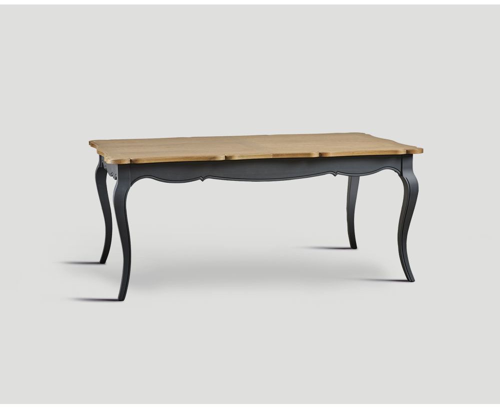 Extendable rectangular table, lacquered and brush-waxed base in Lavagna colour, carved oak top, Vintage Chiaro finish