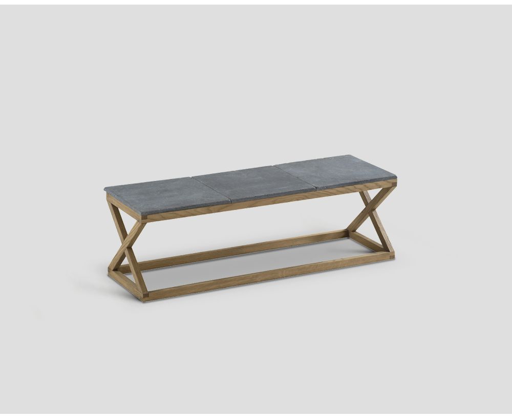 Tavolino rettangolare, in legno di rovere finitura Vintage Chiaro, top in marmo Blue Stone