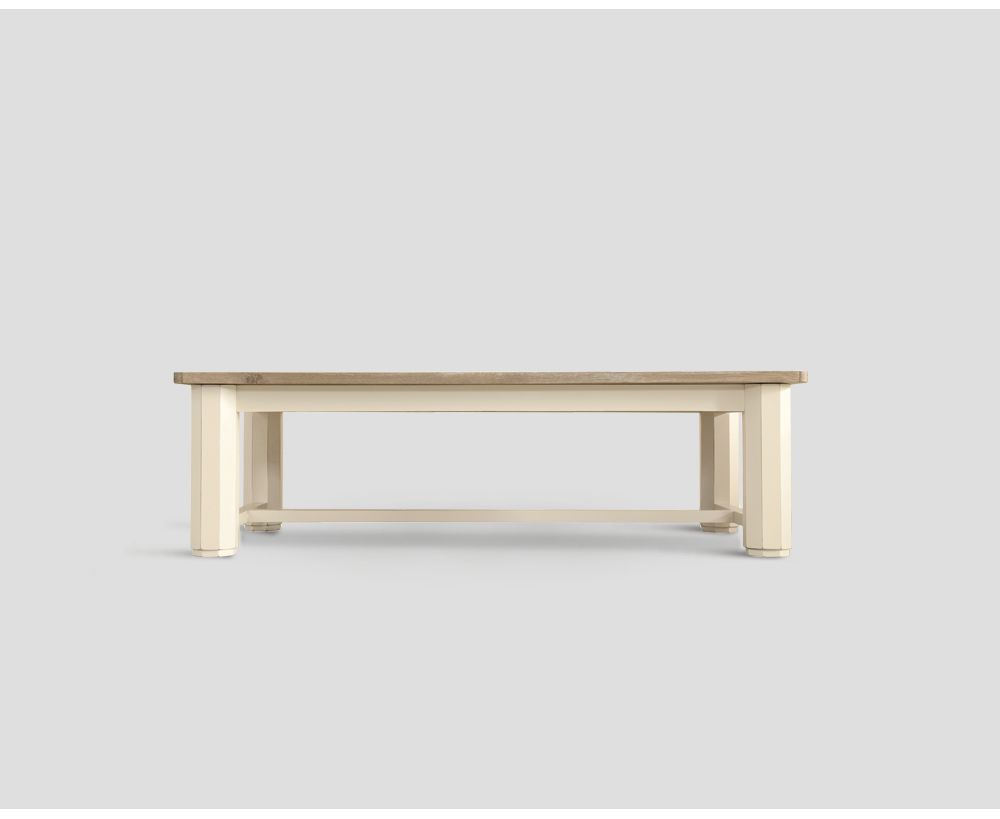 Tavolino rettangolare in legno finitura laccata Bianco Vissuto, top in rovere finitura Vintage Chiaro