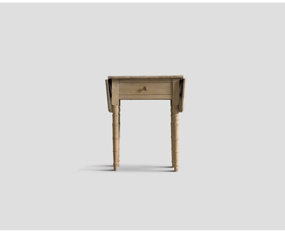 Tavolino (comodino) 1 cassetto con pianetti laterali a ribalta, in rovere finitura decapataolino con 2 ribalte realizzato in legno di rovere, dotato di un cassetto