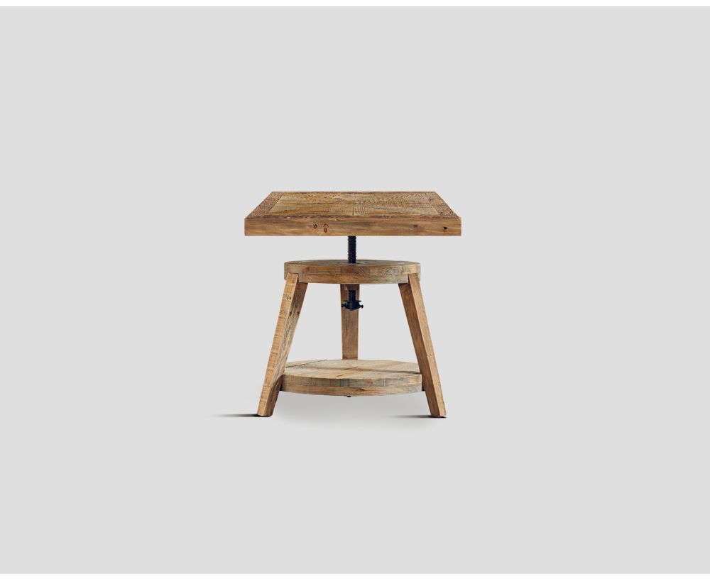 Tavolino quadrato regolabile in altezza, in legno vecchio riciclato finitura Naturale