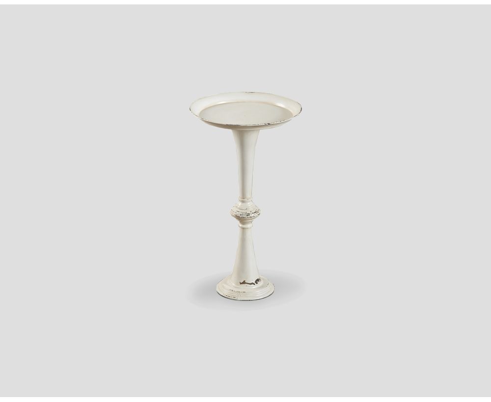 Tavolino tondo con 1 cassetto in metallo finitura bianco decapato