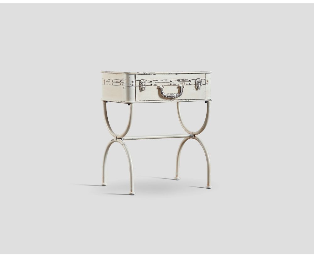 Tavolino con 1 cassetto in metallo finitura Bianco Decapato