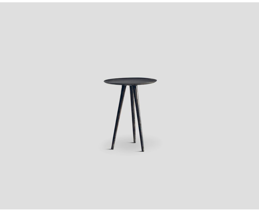 Tavolino tondo in fusione di alluminio galvanizzato color Fumo lucidato a mano