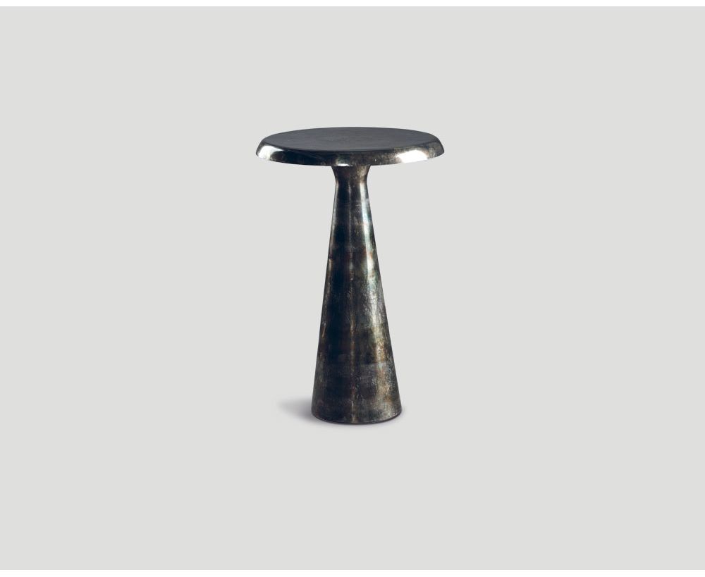 Tavolino tondo in fusione di alluminio galvanizzato color Fumo lucidato a mano