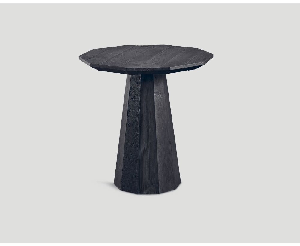 Tavolino (tavolo) tondo geometrico sfaccettato in legno vecchio riciclato finitura laccata e cerata a pennello color Lavagna