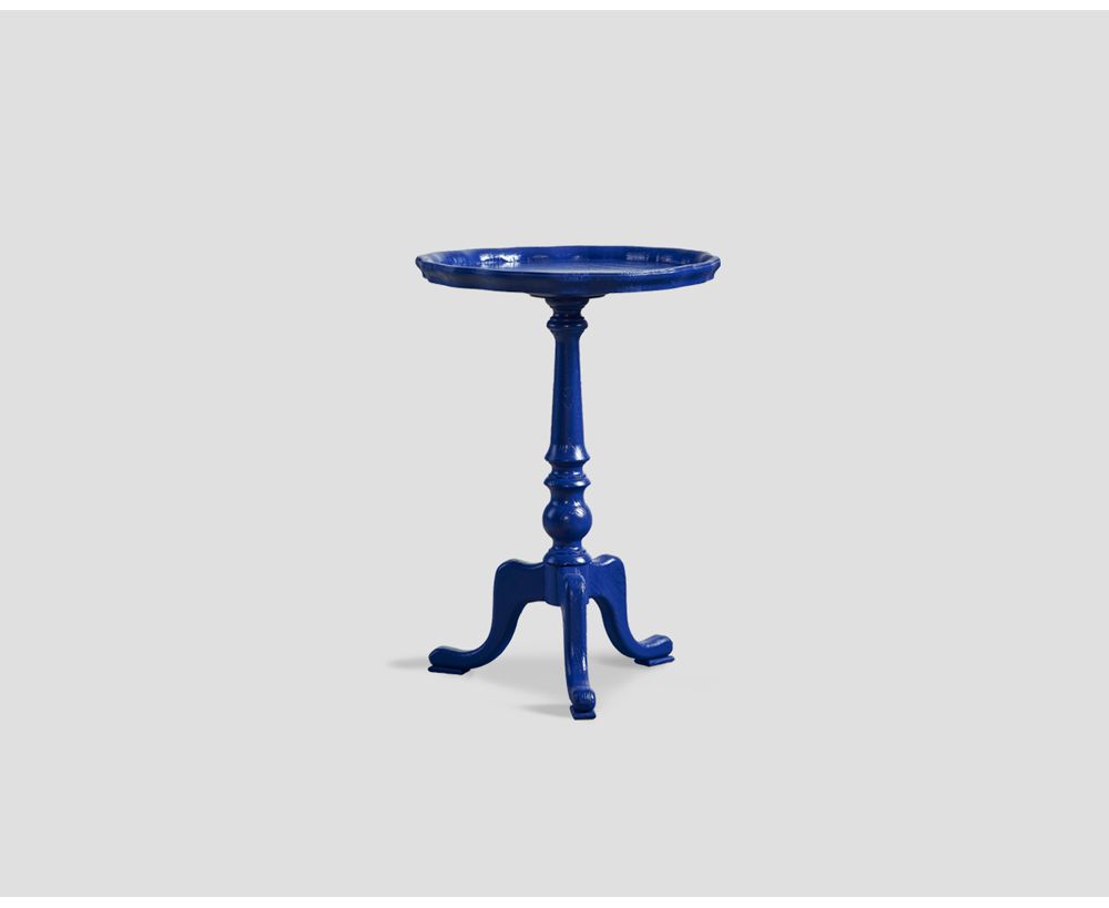 Tavolino tondo in rovere finitura Blu Cobalto.