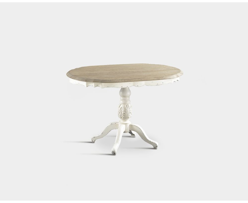 Tavolo ovale, base laccata Bianco Vissuto, top in rovere finitura Vintage Chiaro