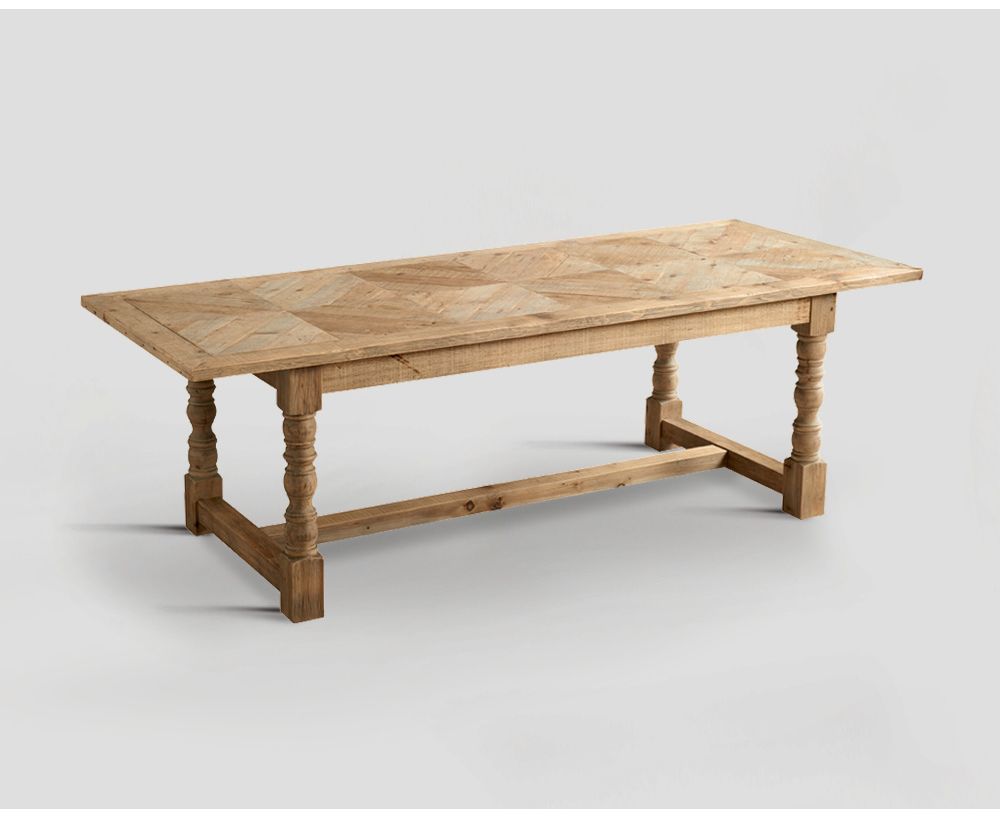 Tavolo rettangolare in legno vecchio riciclato, base finitura Naturale, top a quadrotte finitura Naturale