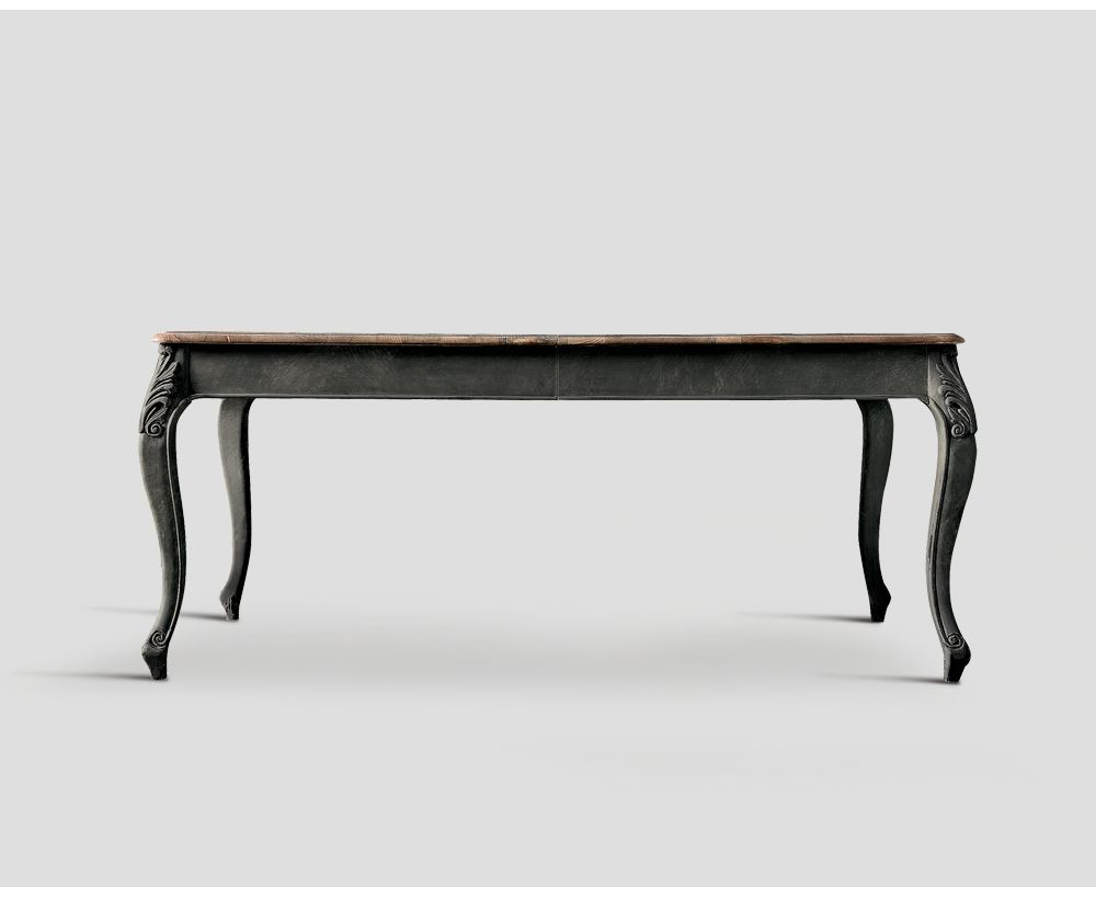 Tavolo rettangolare allungabile, base laccata e cerata a pennello color Lavagna, top in rovere finitura Vintage Chiaro