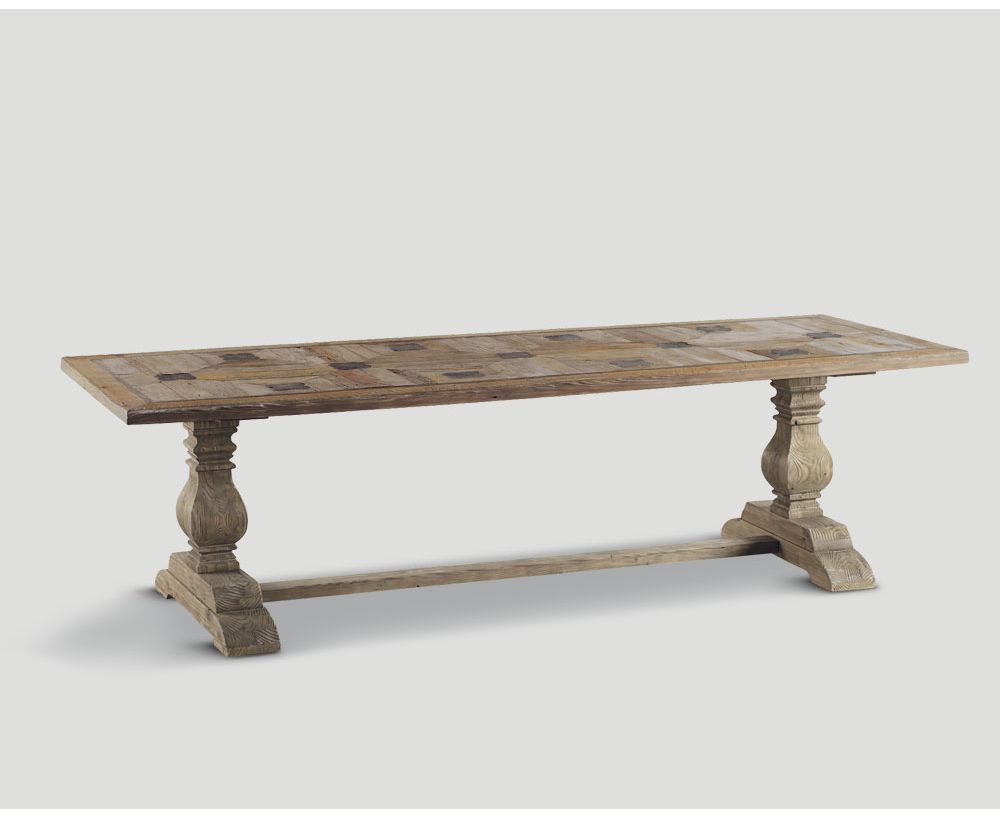 Tavolo rettangolare in legno vecchio riciclato, top a quadrotte con inserti in legno effetto arrugginito, finitura Naturale