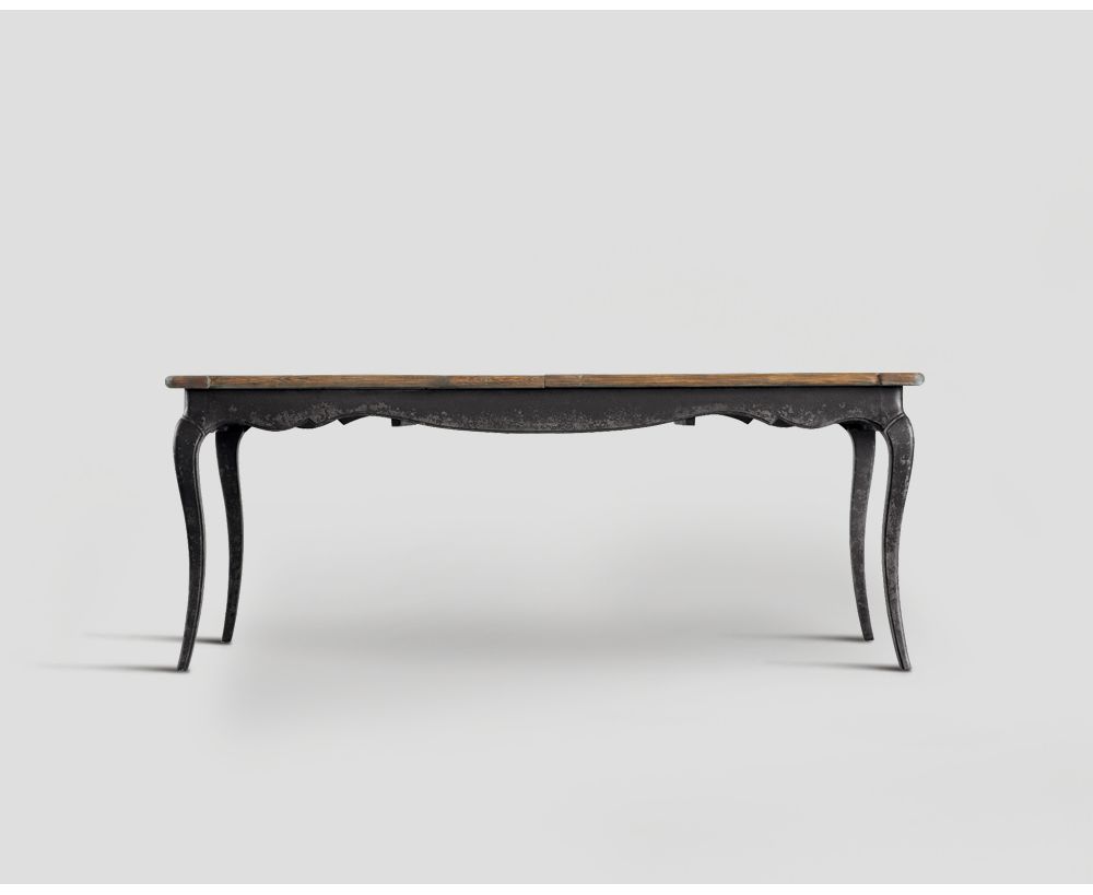 Tavolo rettangolare allungabile in legno vecchio riciclato, base laccata Nero vissuto, top a quadrotte finitura Naturale