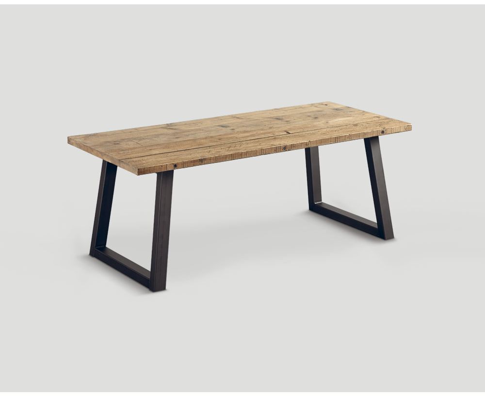 Tavolo rettangolare con base in metallo finitura Ferro Brunito, top in massello di legno vecchio riciclato finitura Naturale