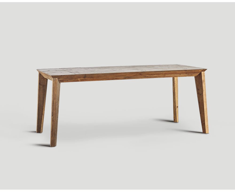 Tavolo rettangolare in legno vecchio riciclato, top in cemento design puzzle