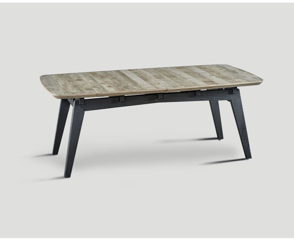Tavolo rettangolare tondeggiante in legno vecchio riciclato, base laccata e cerata a pennello color Lavagna, top in legno massello, finitura Ossidata