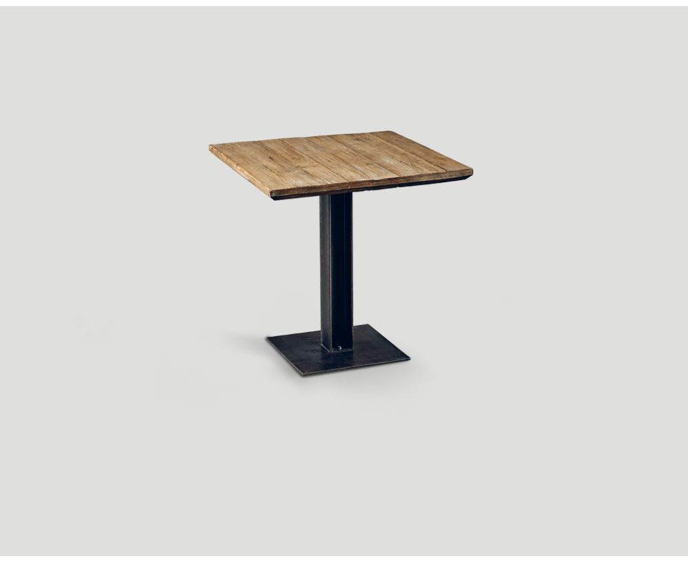 Tavolo quadrato in legno vecchio riciclato con base in metallo finitura Ferro Brunito, top in massello finitura Naturale