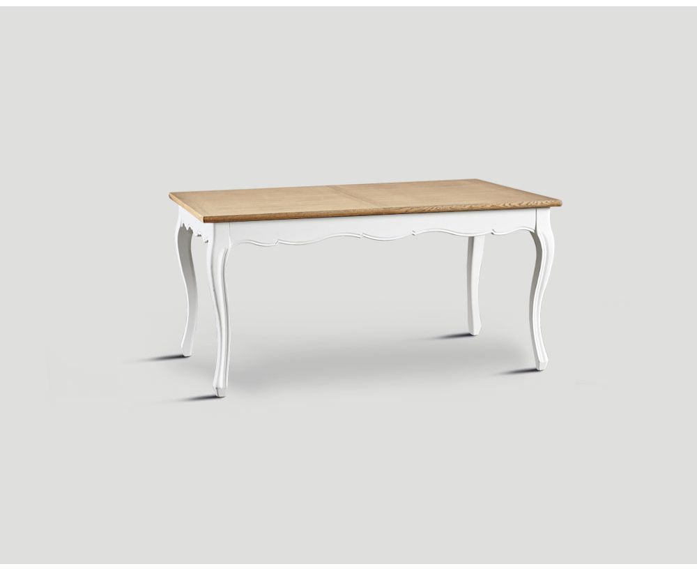 Tavolo rettangolare allungabile con top in rovere finitura Vintage Chiaro, Base laccata Bianco Vissuto