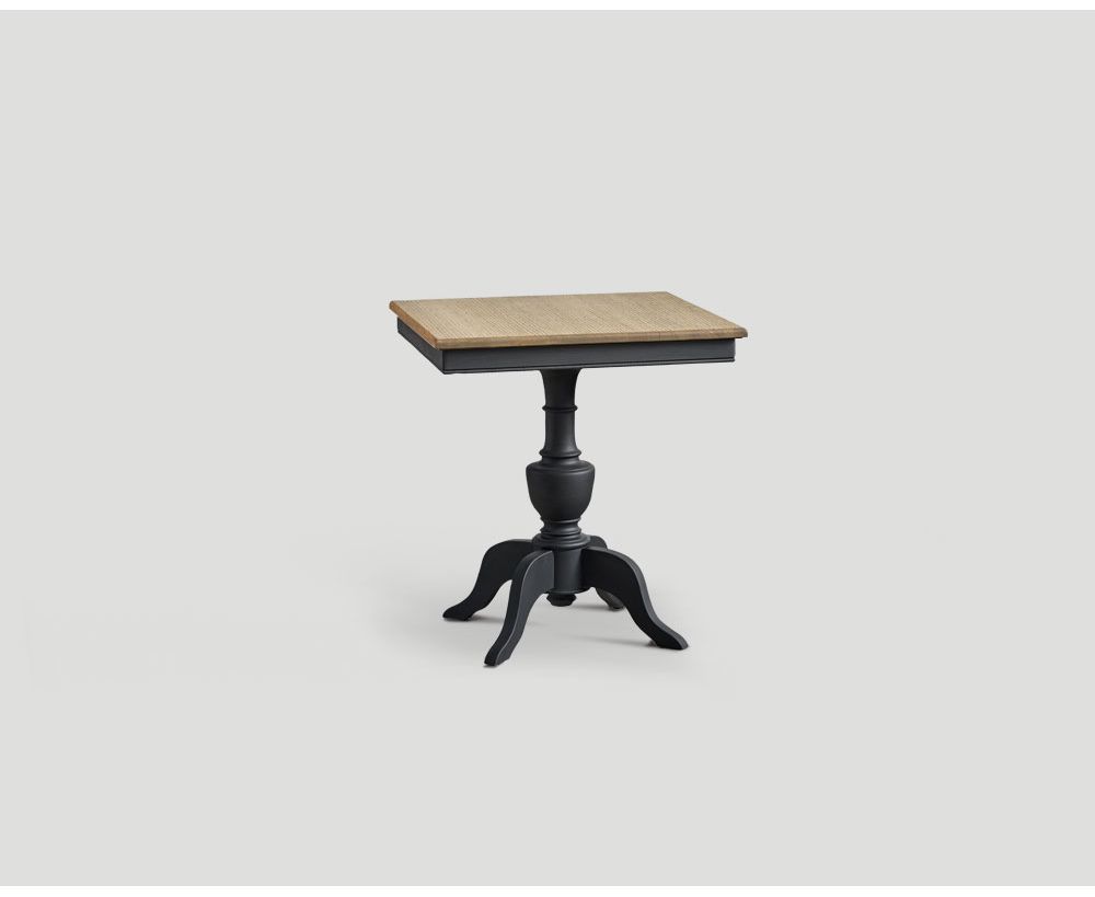 Tavolo quadrato con top in rovere finitura Vintage Chiaro. Base laccata e cerata a pennello color Lavagna