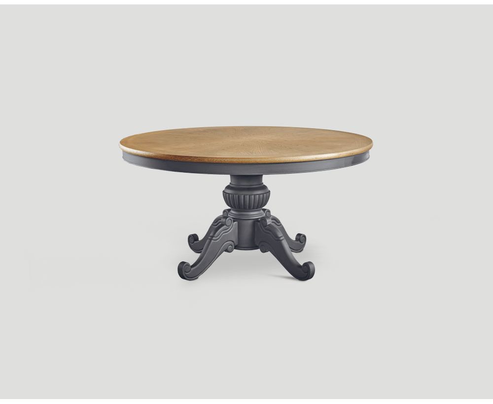 Tavolo tondo, base laccata e cerata a pennello color Lavagna, top in rovere finitura Vintage Chiaro