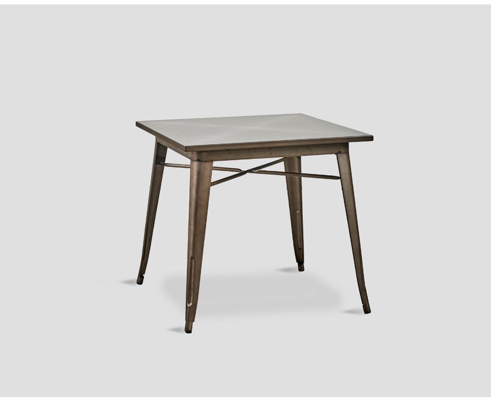 Tavolo quadrato con struttura in metallo finitura Naturale.