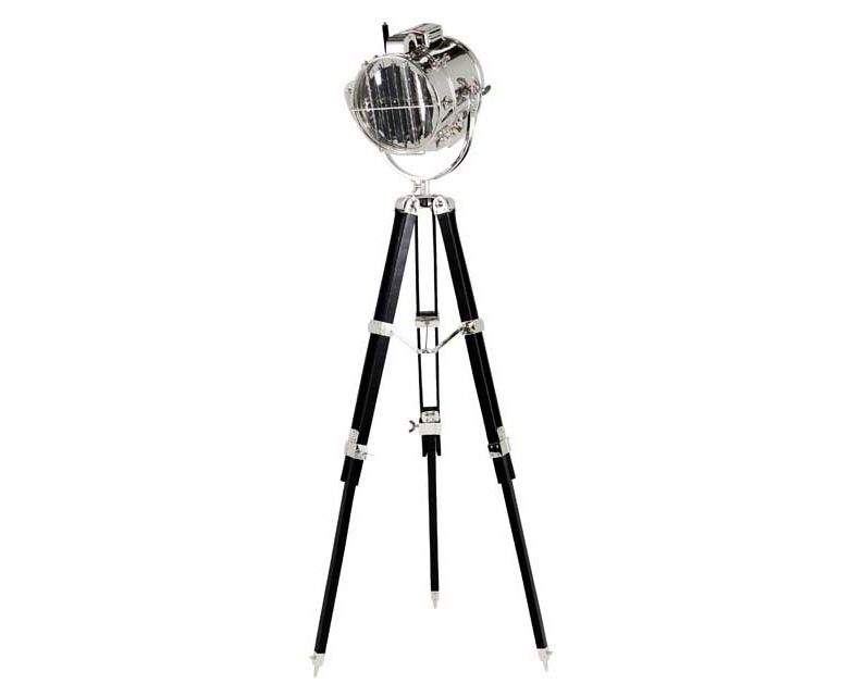 Напольный светильник в индустриальном стиле. Модель стилизована под прожектор. Направление света можно регулировать по вертикальной оси. Металлические шторки можно регулировать: закрывая или открывая их. Модель на треноге, высота прожектора также регулируется.