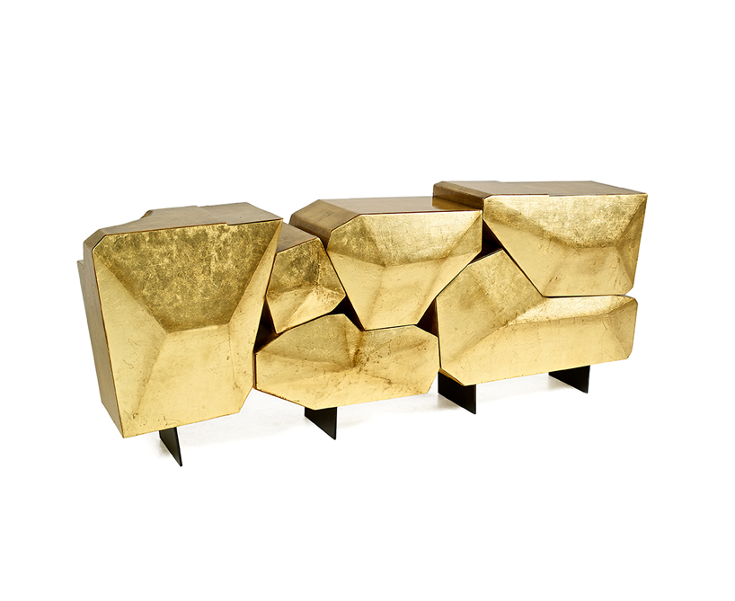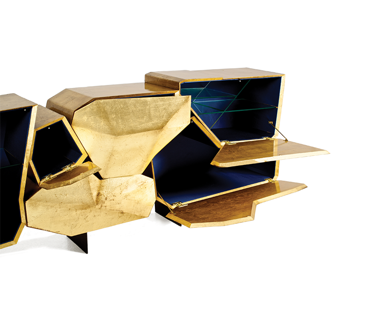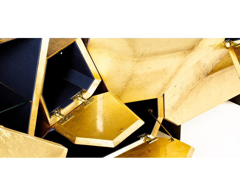 Гранит является неотъемлемой частью города Порту; именно на этом построен город. Наблюдать за Порту - значит заново открывать образы скрытого сна, который мы храним в себе. Bat eye ® представляет свое последнее творение: «Stone», произведение, отражающее красоту камня, освещающего город. «Камень», уникальный сервант ручной работы, покрытый золотым листом и синим сатиновым интерьером, изображающим сияющее движение всего Порту, поглощающего реку.