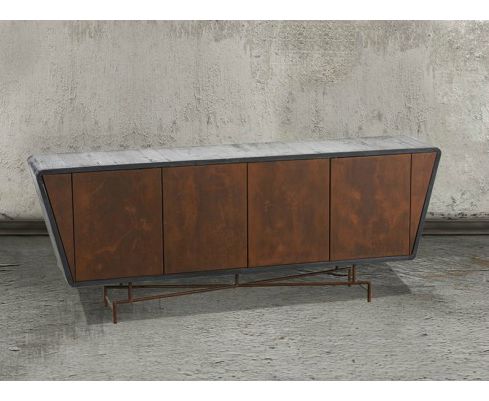 Широкая тумбочка, сделанная из древесины, что говорит о ее прочности и экологичности. Имеет четыре шкафчика. Темный цвет исполнения позволит дополнить такой тумбой как классический, так и современный интерьер помещения.