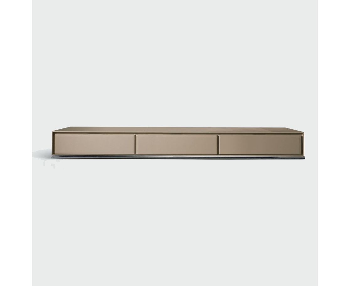 Название коллекции Slick напоминает о форме (переводится как «полоса»). Эта утонченная и элегантная коллекция приводит на память благородство старых сундуков модных путешественников. Модульные объемы, как по горизонтали, так и по вертикали, удобно расположены на хромированном или окрашенном металлическом каркасе: низкие горозонтальные штанги или рамы с высокими ножками. Простота и ригоризм линий обогащаются и подчеркиваются тенью прорези, выемкой, проходящей по всему периметру внешней стороны, одновременно являясь отличительной характеристикой и в то же время ручкой для ящиков.