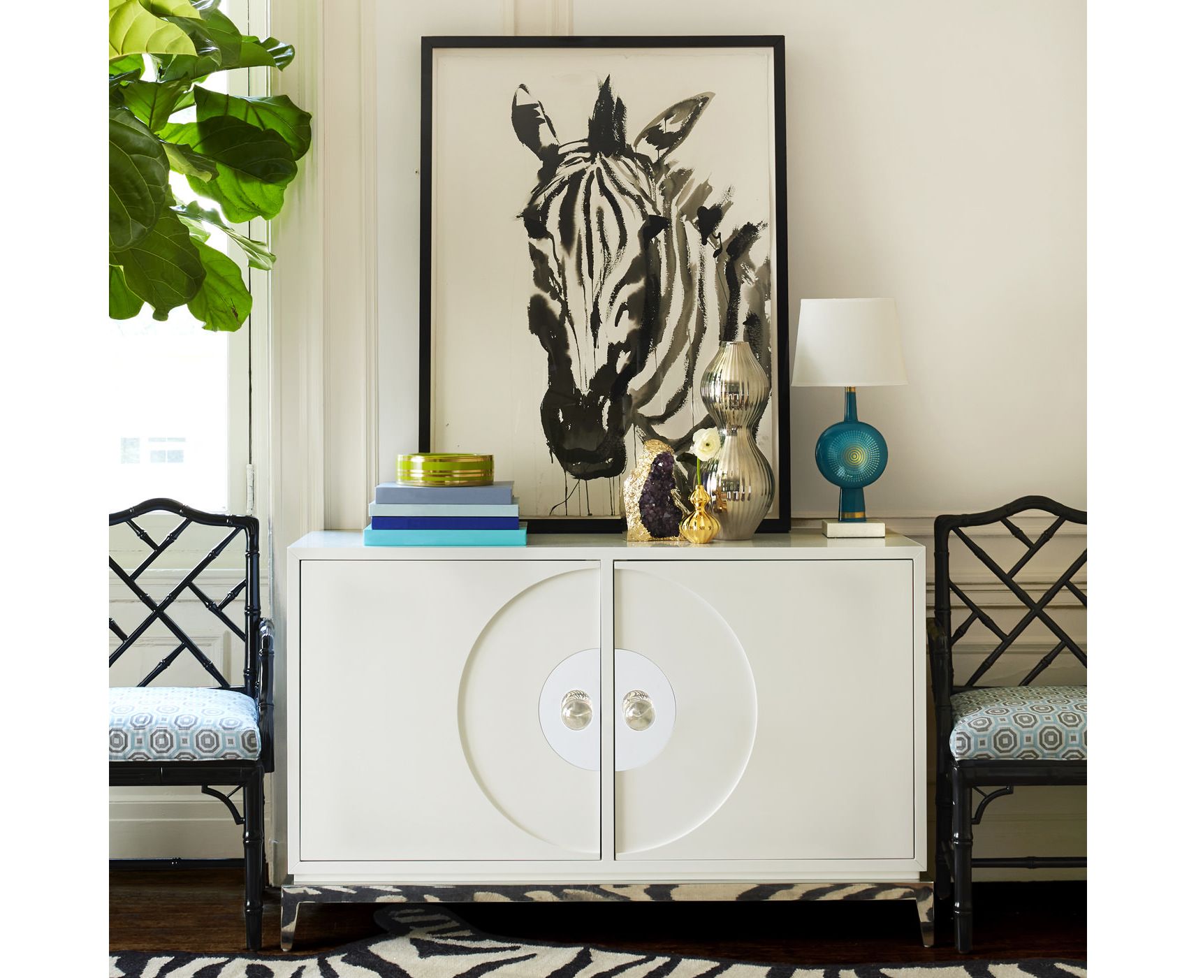 Неоклассические линии, черта голливудского гламура и верхняя нота Mod moxie: это коллекция Channing. Классический Channing Buffet отделан глянцевым лаком и имеет полированные акценты с крупными акриловыми ручками. Демилунские накладки на дверях добавляют шик Chinoise в вашу столовую.