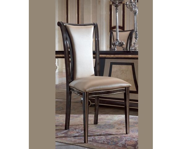 Стул из коллекции Trionfo Collection выполнен в классическом стиле. Простой и скромный дизайн отражает мастерство изготовления и демонстрирует высочайшее качество материалов. Структура сделана из массива дерева. Модели декорированы вручную. Деревянные части каркаса в полиэстровой глянцевой отделке тёмно-коричневого цвета с узором древесного корня. Высокая спинка с мягкой форменной вставкой слегка отклоняется назад, создавая больший комфорт для спины. Мягкое сиденье. Стул декорирован полосами золотого цвета.
