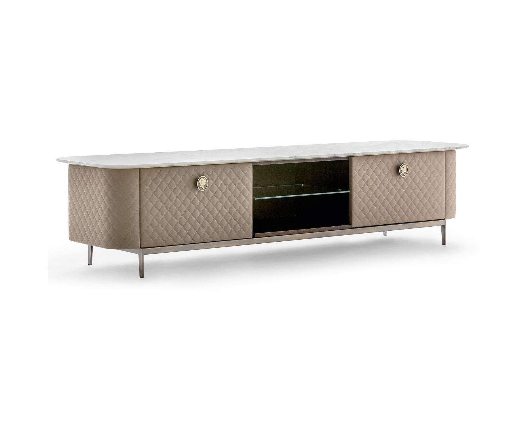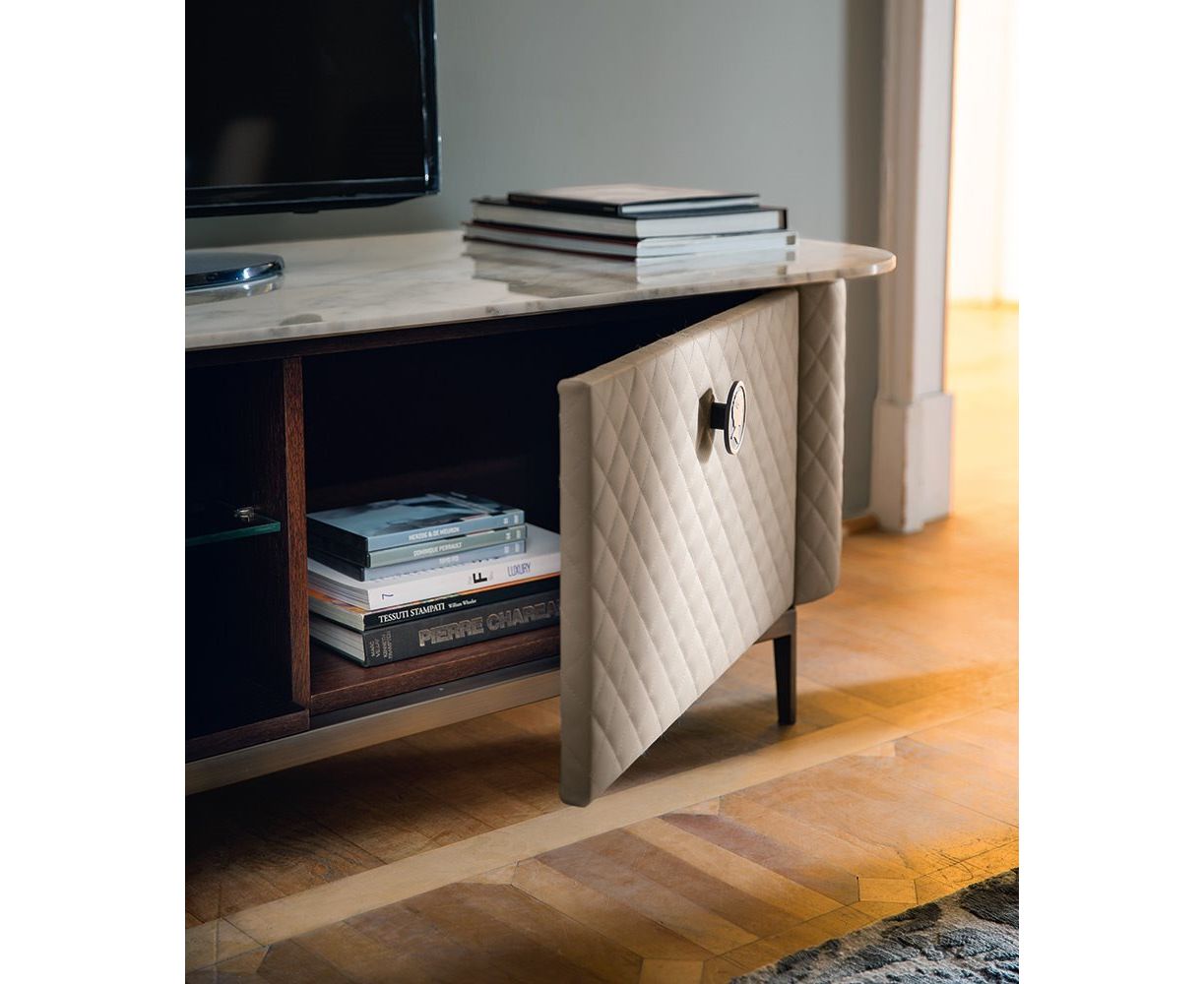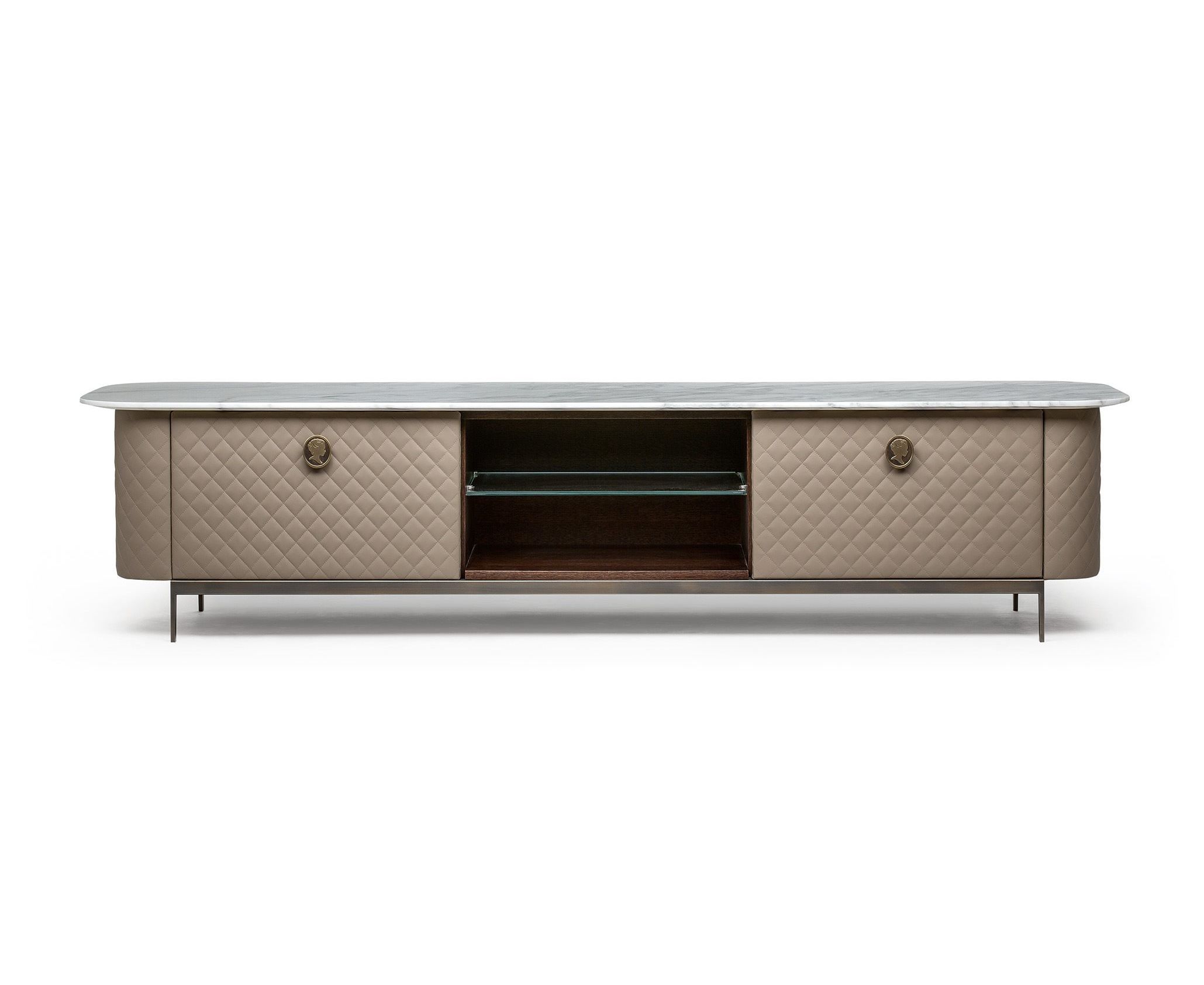 Изумительные детали пошива отличают серию мебели Penelope. Выдвижные ящики и шкафы, выполненные с элементами высокой моды, сочетающие лучшую кожу с благородной отделкой и ярким металлом. Конструкция, двери и ящики покрыты стеганой кожей с бриллиантами, чтобы придать всему ассортименту элегантный стиль, характерный для итальянской кожаной работы от кутюр.