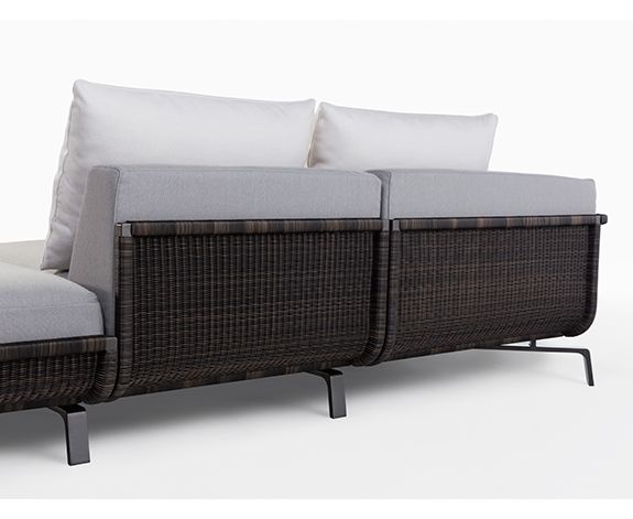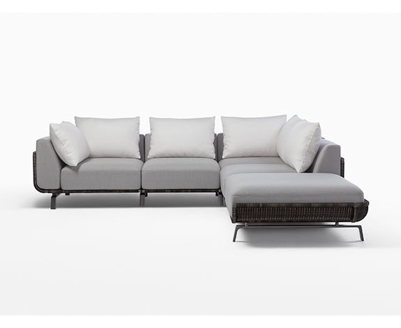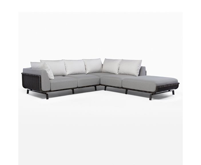 Tortuga Sectional является опорным элементом уличной сцены и обеспечивает визуальный эффект и максимальный комфорт. Его изогнутые стороны демонстрируют превосходное тканое мастерство и обеспечивают щедрую амортизацию.
